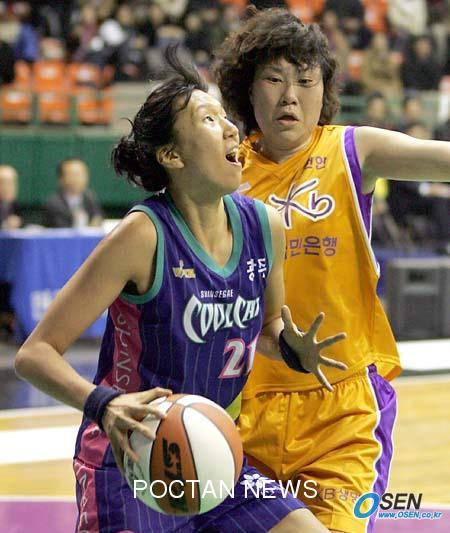 2일 장충체육관에서 벌어진 여자농구 겨울리그서 신세계의 정진경(왼쪽)이 국민은행 정선민이 버티고 있는 골밑을 파고들고 있다. 이날 게임에서 미국의 WNBA 출신인 정선민은 32득점을 올린 반면 대만리그에서 이번 시즌 복귀한 정진경은 10득점에 그쳐 아직은 역부족임을 실감했다./손용호 기자(폭탄뉴스.com) [Copyright ⓒ OSEN(www.osen.co.kr) 무단전재 및 재배포 금지]