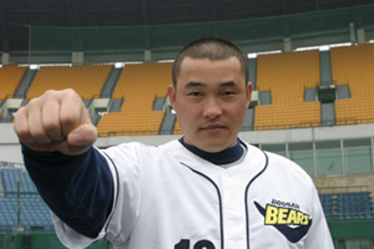 두산의 간판타자 김동주(29)가 삭발을 했다. 지난해 플레이오프가 끝난후 돌연 은퇴를 선언했다가 지난 10일 팀에 복귀한 김동주는 삭발로 실추된 명예를 회복하겠다는 결의를 다지고 있다. 김동주는 지난 24일 잠실구장에서 열리고 있는 팀의 함동훈련에 머리를 짧게 자르고 모습을 드러내 팀동료들은 물론 김경문 감독 등 코칭스태프를 깜짝 놀라게 했다. 올시즌 팀의 주장까지 맡은 김동주는 26일 일본 쓰쿠미에 차려진 전지훈련지로 출발할 예정이다./사진=두산 베어