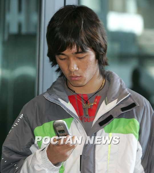 한국 축구의 차세대 골잡이로 각광받고 있는 '득점 기계' 박주영(20.고려대)이 한 달여의 중동 및 스페인 전지훈련을 마치고 11일 오후 귀국했다. 박주영이 인천공항 입국장에 들어선 뒤 휴대폰을 켜고 있다./인천=손용호 기자 spjj@poctannews.com 1 (Copyright ⓒ 폭탄뉴스 www.poctannews.com 무단전재 및 재배포 금지)