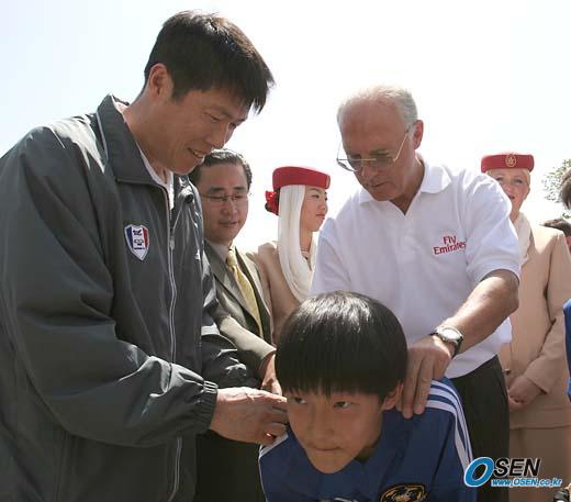 2일 내한한 프란츠 베켄바워 2006 독일월드컵 조직위원장이 차범근 축구교실을 방문, 어린이의 유니폼 등에 사인해 주고 있다. 베켄바워 위원장은 이날 서울 밀레니엄 힐튼호텔에서 열린 아시아축구연맹(AFC)과 에미리트 항공과의 후원 계약 조인식에 참석하기 위해 방한했다. /손용호 기자 spjj@poctannews.com (Copyright ⓒ 폭탄뉴스 www.poctannews.com 무단전재 및 재배포 금지)