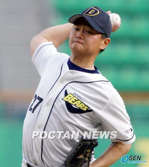 7일 두산 베어스와 현대 유니콘스의 잠실경기 두산이 현대에 2-0으로 완봉승을 거두며 8연승을 이어갔다. 두산 선발 투수 박명환은 7과3/1이닝동안 단 1안타만을 내주며 탈삼진을 9개나 잡아내는 호투를 했다. 완봉까지 노려 볼수 있었으나 투구수가 100개를 넘어가자 부상 재발을 우려한 김경문감독이 직접 마운드에 올라 김성배투수와 교체했다. /잠실=손용호기자spjj@poctannews.com (Copyright ⓒ 폭탄뉴스 www.poctannews.com 무단전재 및 재배포 금지)
