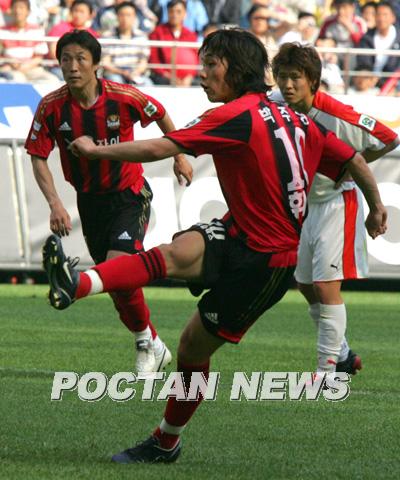 8일 서울 상암 월드컵경기장에서 벌어진 2005 삼성 하우젠컵 대회 최종일 FC 서울-포항 스틸러스의 경기 후반 박주영이 자신이 얻어낸 페널티킥을 차고 있다. 하지만 포항 골키퍼 김병지의 선방에 걸렸다. /상암=주지영 기자 jj0jj0@poctannews.com (Copyright ⓒ 폭탄뉴스 www.poctannews.com 무단전재 및 재배포 금지)
