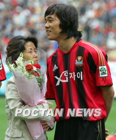 어버이날인 8일 서울 상암 월드컵경기장에서 벌어진 FC 서울과 포항 스틸러스전에 앞서 열린 행사에서 박주영이 어머니와 가볍게 포옹하며 이야기하고 있다. 서울 구단은 이날 어버이날을 맞아 선수들의 부모를 초청했다. /상암=주지영 기자 jj0jj0@poctannews.com (Copyright ⓒ 폭탄뉴스 www.poctannews.com 무단전재 및 재배포 금지)