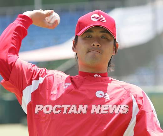 조성민이 한화 이글스 유니폼을 입고 본격적인 훈련에 나섰다. 재활군 선수들과의 합동 훈련이 끝나면 헬스 클럽에서 체력 단련에 여념이 없다. 다시 야구를 하게 된 것이 행복하다며 재기에 강한 의욕을 보였다. 조성민이 캐치볼을 하고 있다./대전=손용호 기자 spjj@poctannews.com (Copyright ⓒ 폭탄뉴스 www.poctannews.com 무단전재 및 재배포 금지)