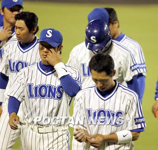 11일 삼성 라이온즈와 두산 베어스의 대구경기서 두산이 삼성에 5-4로 이기면서 하루만에 선두에 복귀했다. 올 시즌 두산에 1승 4패로 밀리며 4번을 모두 1점차로 패한 삼성 선수들이 침울한 표정으로 그라운드서 나오고 있다./대구=손용호 기자 spjj@poctannews.com (Copyright ⓒ 폭탄뉴스 www.poctannews.com 무단전재 및 재배포 금지)