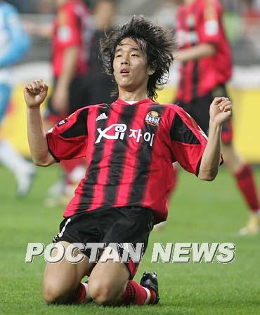 18일 서울 상암 월드컵경기장에서 열린 삼성 하우젠 K-리그 FC 서울과 광주 상무의 경기 전반 박주영이 1-2로 뒤지고 있던 상황에서 헤딩 동점골을 넣고 기도 세레머니를 하기 위해 잔디밭에 주저 앉고 있다./상암=손용호 기자 spjj@poctannews.com (Copyright ⓒ 폭탄뉴스 www.poctannews.com 무단전재 및 재배포 금지)
