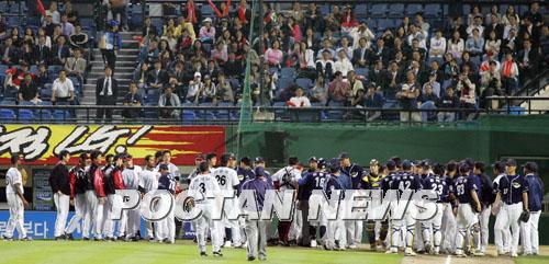 20일 두산 베어스와 LG 트윈스의 잠실 라이벌전 두산의 4회초에 최경환이 LG 선발 투수 장문석의 몸쪽 공에 불쾌해 하며 포수 조인성과 실랑이를 벌이자 양 팀 선수들이 모두 덕아웃을 뛰쳐 나와 일촉즉발의 상황이 연출됐다./잠실=주지영 기자 jj0jj0@poctannews.com (Copyright ⓒ 폭탄뉴스 www.poctannews.com 무단전재 및 재배포 금지)