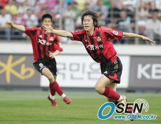 22일 광양 전용구장에서 열린 전남 드래곤즈와 FC 서울의 경기 전반 12분 김은중이 선제골을 넣은 뒤 환호하고 있다./광양=손용호 기자 spjj@poctannews.com (Copyright ⓒ 폭탄뉴스 www.poctannews.com 무단전재 및 재배포 금지) (Copyright ⓒ 폭탄뉴스 www.poctannews.com 무단전재 및 재배포 금지)