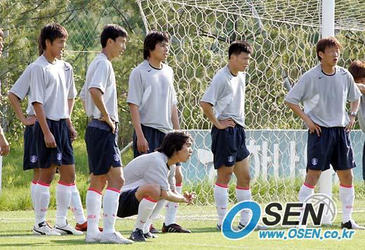 2006 독일월드컵 아시아 최종예선 우즈베키스탄, 쿠웨이트전에 대비해 24일 태극전사들이 파주 NFC에 소집돼 첫 훈련을 실시했다. 칼 야스퍼트 피지컬 트레이너가 선수들에게 설명하는 동안 박주영만 앉아서 듣고 있다 ./파주=손용호 기자 spjj@osen.co.kr [Copyright ⓒ OSEN(www.osen.co.kr) 무단전재 및 재배포 금지]