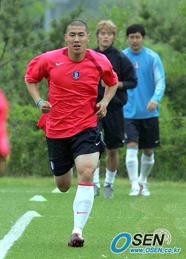 2006 독일월드컵 아시아 최종예선 우즈베키스탄, 쿠웨이트전에 나설 국가대표팀이 25일 파주 NFC에서 소집 이틀째 훈련을 가졌다. 지난 24일 독일에서 귀국, 이날부터 훈련에 참가한 차두리가 단거리 스퍼트 훈련을 하고 있다./파주=손용호 기자 spjj@osen.co.kr [Copyright ⓒ OSEN(www.osen.co.kr) 무단전재 및 재배포 금지]