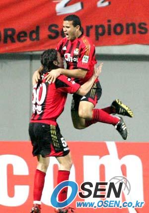 노나또의 극적인 동점골이 FC 서울을 패배의 수렁에서 구해냈다. 서울은 29일 서울 상암월드컵경기장에서 열린 대전 시티즌과의 홈경기에서 1-2로 뒤진 후반 37분 터진 노나또의 동점골로 2-2 무승부를 기록하며 소중한 승점 1점을 챙겼다. 박주영과 김동진(이상 국가대표), 백지훈 김승용(이상 20세 이하 청소년대표) 등의 결장으로 정상적인 전력 가동이 어려운 서울은 정조국과 김은중을 투톱에, 히칼도를 공격형 미드필더에 배치하고 김동진이 자리를 비운 왼쪽 윙백에 올 시즌 첫 출전하는 최재수를 투입하며 2연승을 노렸으나 고질적인 수비 조직력의 문제점을 드러내며 어려운 경기를 펼쳐야 했다. 전반전은 대전의 페이스. 대전은 공오균, 레안드롱 투톱과 공격형 미드필더 이관우, 왼쪽 측면 미드필더 주승진을 앞세워 전반 초반부터 FC 서울 문전을 위협했다. 정규리그 3경기에서 2골에 그치는 등 최근 빈곤한 득점력을 보였던 대전은 이날 킥오프 휘슬이 울린 지 불과 6분만에 선제골을 넣으며 골가뭄에 단비를 내렸다. 왼쪽 코너킥 찬스에서 이관우가 올린 크로스를 골에어리어 왼쪽에서 최윤열이 헤딩슛, 서울 골네트를 가른 것. 서울은 전반 10분 페널티 에어리어 내 정면에서 김은중이 페널티킥을 얻어냈지만 키커로 나선 히칼도의 슛을 최은성이 그림 같이 막아내 동점골을 터트리는 데 실패했다. 히칼도는 오른발로 왼쪽 골네트 구석을 노렸지만 최은성은 히칼도의 킥 방향을 정확히 예측, 몸을 날리며 히칼도의 슈팅을 막아냈다. 실점 위기를 넘기며 기세가 오른 대전은 더욱 거세게 서울 문전을 위협했고 전반 25분 공오균이 추가골을 터트렸다. 이관우가 아크 정면에서 왼쪽 페널티에어리어로 찔러준 패스를 연결 받아 골에어리어 왼쪽 측면에서 골키퍼와 1대1로 맞서 찬스에서 침착하게 왼발 슛으로 마무리, 다시 서울의 골네트를 흔들었다. 서울은 공수 밸런스가 전혀 맞지 않은데다 미드필드에서 자주 패스 미스가 나오는 등 답답한 경기를 펼치며 좀처럼 골 찬스를 잡지 못했지만 전반 인저리 타임에 히칼도의 멋진 ‘킬링패스’를 받은 김은중이 득점으로 연결하며 한골을 만회했다. 히칼도가 센터서클에서 문전으로 길게 넣어준 패스를 김은중이 페널티 에어리어 내 오른쪽에서 가슴으로 트래핑한 후 오른발 토우킥으로 앞으로 달려나온 골키퍼 최은성의 키를 살짝 넘기는 감각적인 슈팅을 성공시킨 것. 서울은 후반 초반부터 공격의 주도권을 잡고 수 차례 좋은 찬스를 잡았으나 마무리 능력 부재로 결정적인 작품을 만들어내지 못했고 다급해진 이장수 감독은 이원식과 노나또를 잇따라 투입하며 총력전을 펼쳤다. 열릴 듯 열리지 않던 대전의 골네트가 흔들린 것은 후반 37분. 왼쪽 코너킥 찬스에서 히칼도가 올린 크로스를 김은중이 헤딩슛 한 것이 골키퍼와 크로스 바에 거푸 맞고 흐르는 것을 골에어리어 왼쪽에 있던 노나또가 왼발 슛, 극적인 동점골을 터트렸다. FC 서울로서는 홈경기 8번 만에 지난해 총관중(22만3529명)을 돌파하는 ‘경사’를 맞은 날 패배를 모면하는 소중한 한 골이었다. 이로써 대전은 1승 3무 승점 6점으로 4위 자리를 지켰고, 서울은 1승 1무 2패 승점 4점째를 올렸다. 상암=김정민 기자 cjones10@osen.co.kr [Copyright ⓒ OSEN(www.osen.co.kr) 무단전재 및 재배포 금지]