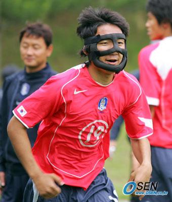 오는 3일 세계청소년선수권대회 출전을 위해 네덜란드로 떠날 청소년대표팀이 1일 오후 파주 NFC에서 재집결, 포토데이 행사 및 훈련을 실시했다. 턱 부상을 당한 신영록이 안면 보호 마스크를 쓰고 밝은 표정으로 훈련에 임하고 있다./파주=주지영 기자 jj0jj0@osen.co.kr [Copyright ⓒ OSEN(www.osen.co.kr) 무단전재 및 재배포 금지]