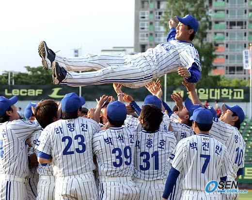 2일 삼성 라이온즈와 롯데 자이언츠의 경기가 열리기 전 삼성 투수 김현욱의 은퇴식이 열렸다.1993년에 삼성에 입단, 쌍방울을 거쳐 삼성으로 돌아온 김현욱은 13년간 519경기에 출장, 71승 31패 22세이브 54홀드를 기록했다.동료 선수들이 김현욱을 헹가래치고 있다./대구=손용호 기자 spjj@osen.co.kr [Copyright ⓒ OSEN(www.osen.co.kr) 무단전재 및 재배포 금지]