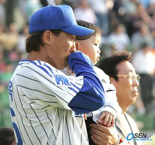2일 삼성 라이온즈와 롯데 자이언츠의 경기가 열리기 전 삼성 투수 김현욱의 은퇴식이 열렸다.1993년에 삼성에 입단, 쌍방울을 거쳐 삼성으로 돌아온 김현욱은 13년간 519경기에 출장, 71승 31패 22세이브 54홀드를 기록했다. 전광판에 가족들의 영상편지가 뜰 때 김현욱이 아들을 가슴에 품고 눈시울을 붉히고 있다./대구=손용호 기자 spjj@osen.co.kr [Copyright ⓒ OSEN(www.osen.co.kr) 무단전재 및 재배포 금지]