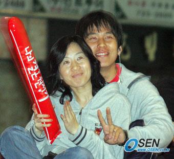 한국과 우즈베키스탄의 2006 독일월드컵 아시아 최종예선이 벌어진 3일 서울 광화문 네거리에서 한 커플이 다정스런 포즈로 전광판을 통해 중계를 즐기고 있다./주지영 기자 jj0jj0@osen.co.kr [Copyright ⓒ OSEN(www.osen.co.kr) 무단전재 및 재배포 금지]