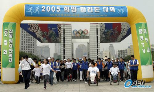 4일 오전 올림픽공원에서 열린 장애인과 함께하는‘2005 희망마라톤대회’참가자들이 일제히 힘찬 출발을 하고 있다. /주지영 기자 jj0jj0@osen.co.kr [Copyright ⓒ OSEN(www.osen.co.kr) 무단전재 및 재배포 금지]