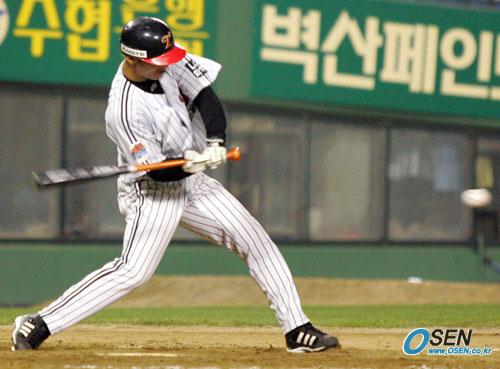 7일 LG 트윈스와 현대 유니콘스의 잠실경기 4-4 동점이던 LG의 10회말 1사 2루서 한규식이 우익수 뒤에 떨어지는 끝내기 안타를 날리고 있다. /주지영 기자 jj0jj0@osen.co.kr [Copyright ⓒ OSEN(www.osen.co.kr) 무단전재 및 재배포 금지]