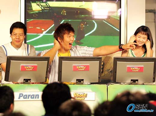 미국 프로농구 NBA 포틀랜드 트레일블레이저스의 하승진이 12일 서울 삼성동 코엑스몰 메가스튜디오에서 팬과의 만남을 겸한 컴퓨터 농구 게임 이벤트를 가졌다. 하승진은 자신의 홈페이지를 통해 신청을 받아 '하파이브(HA-5ive)' 팀을 결성, 파란 프리스타일 리그를 치르고 있는 현 챔피언팀인 프리위즈와 한판 승부를 겨루었다. 하승진이 마지막에 시도한 슛이 블록을 당하자 어이없다는 듯 상대편을 손가락으로 가리키고 있다./코엑스몰=손용호 기자 spjj@osen.co.kr [Copyright ⓒ OSEN(www.osen.co.kr) 무단전재 및 재배포 금지]