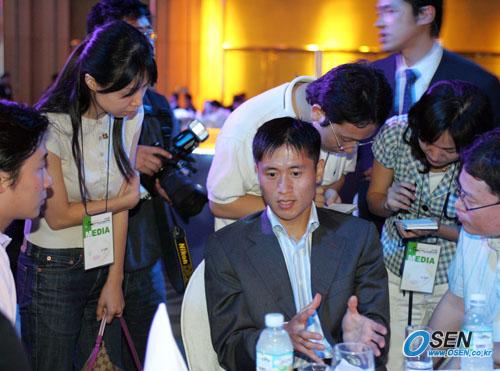 '2005 MBC 세계 유소년 축구대회'의 조추첨을 겸한 전야제가 13일 저녁 홍은동 그랜드 호텔에서 열렸다. 추첨 행사에 참여한 이영표가 취재진에 둘러싸여 인터뷰에 한창이다. /주지영 기자 jj0jj0@osen.co.kr [Copyright ⓒ OSEN(www.osen.co.kr) 무단전재 및 재배포 금지]