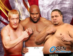 한국 격투기의 자존심 최홍만(25)이 ‘야수’ 밥 샙(31)과 맞붙는다. 그 무대는 오는 9월13일 일본 오사카에서 열리는 격투기 K-1 월드그랑프리 개막전. 일본 는 ‘한국 씨름의 왕자 최홍만이 월드그랑프리 개막전에서 밥 샙의 맞대결이 내정 됐다’고 16일치에 보도했다. 만약 이 대전이 예정대로 성사된다면 두 투사 합쳐 키 418㎝, 몸무게 315㎏(최홍만 218㎝, 160㎏-밥 샙 200㎝, 155㎏)이 한 링에서 쿵쿵 울리는, ‘격투기 사상 최대의 거대 육탄 대결이 된다’고 이 신문은 전했다. 6월14일 K-1 월드그랑프리 히로시마대회 슈퍼파이트에서 ‘테크노 골리앗’ 최홍만은 미국의 레슬러 톰 하워드(36)를 1회 2분 11초만에 KO로 눕히고 K-1 데뷔 후 4연승을 기록한 바 있다. 밥 샙은 같은 대회에서 토너먼트에서 우승, 월드그랑프리 출전 자격을 따냈다. 최홍만은 3월19일 K-1 데뷔무대였던 월드그랑프리 서울대회에서 우승, 출전 티켓을 확보해 놓은 상태다. 는 밥 샙이 히로시마대회 우승 직후 최홍만과의 맞대결을 요구, 최홍만이 흔쾌히 응함으로써 대전이 성사됐다고 밝혔다. K-1 다니카와 사다하루(43) 프로듀서도 “(둘의 맞대결은) 월드그랑프리 개막전의 핵심카드로 하고 싶다”며 최고의 흥행 카드로 활용할 속셈을 은근히 내비친 상태다. 히로시마대회 우승으로 기분이 한껏 고양된 밥 샙은 “보냐스키나 그라베, 제롬 르밴너 등과 맞붙어 나 자신을 시험해보고 싶다”면서 “최홍만과도 싸우고 싶다”며 격투기 전사들의 이름을 나열했다. 최홍만도 그에 맞서 “밥 샙이 아니라 그 누구라도 맞서서 이길 자신이 있다”고 기개를 돋우었다. K-1 무대에서 4전전승을 거두고 있는 최홍만은 밥 샙과의 대결에 앞서 스모 요코즈나 출신 아케보노(36)와 리턴매치를 벌인다. 7월29일 아케보노의 고향인 하와이에서 열리게 될 월드그랑프리 하와이대회는 최홍만이 격투기 세계에서 한 단계 더 격상할 수 있는 절호의 무대가 될 수 있을 것으로 보인다. 서울대회 2회전에서 최홍만에게 무릎꿇었던 아케보노는 당시 패배가 부상 때문이었다고 강변하면서 그 동안 복수전을 별러왔다. 최홍만 역시 아케보노와의 대전을 회피할 이유가 없다고 대결을 수락했다. 현재 하와이에서 맹훈련 중인 아케보노는 “하와이에서 경기를 갖는 것이 처음인데다 최홍만과 대결을 반드시 이겨야 한다”며 전의를 불사르고 있다. 아케보노를 다시 꺾고 월드그랑프리에 나간다는 목표를 세워놓고 있는 최홍만은 하와이 대회에 대비, 당분간 한국에서 강화훈련을 가질예정이고 밥 샙은 2주 가량 휴식을 취한 후 호주에서 합숙훈련에 들어갈 계획이다. 홍윤표 기자 chuam2@osen.co.kr [Copyright ⓒ OSEN(www.osen.co.kr) 무단전재 및 재배포 금지]