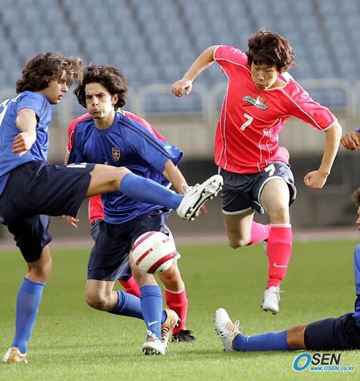 잉글랜드 프리미어리그 맨체스터 유나이티드 이적이 임박한 것으로 알려진 박지성(PSV 아인트호벤)이 16일 저녁 부천 공설운동장에서 게토레이 CF를 촬영했다. 박지성이 대표팀 유니폼과 같은 디자인의 복장으로 실전을 방불케 하는 장면을 찍고 있다./부천=손용호 기자 osen.co.kr [Copyright ⓒ OSEN(www.osen.co.kr) 무단전재 및 재배포 금지]