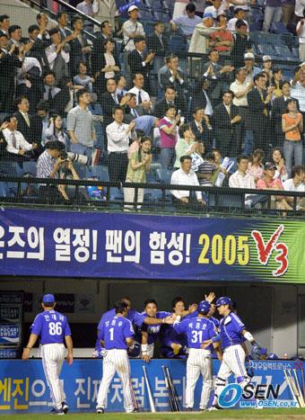기뻐하는 '삼성 맨'과 삼성 팬들