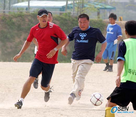 안산축구사랑회가 19일 안산 고잔 신도시 임시운동장에서 개최한 제2회 불우아동돕기 설기현 축구대회와 국가대표 선수 소장품 경매 행사에 참석한 설기현이 축구사랑회 임원들과 친선 축구 경기를 하고 있다. 설기현은 적은 힘이나마 불우이웃을 돕는 데 도움이 되었으면 좋겠다며 오전 8시 개회 때부터 오후 5시에 폐회할 때까지 자리를 지키며 팬 사인회, 북한대표 안영학과 이영표 김두현 등이 내놓은 축구화 경매 등 모든 행사 진행에 열의를 보였다./안산=손용호 기자 spjj@osen.co.kr [Copyright ⓒ OSEN(www.osen.co.kr) 무단전재 및 재배포 금지]