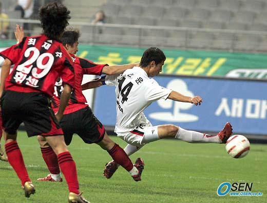 19일 서울 상암 월드컵경기장에서 벌어진 FC 서울과 부천 SK의 경기 후반 공격에 가담한 부천의 수비수 김한윤이 측면에서 올라온 크로스를 오른발로 가볍게 방향을 틀며 슈팅하고 있다. 하지만 아쉽게 볼은 골문을 벗어났다./상암=손용호 기자 spjj@osen.co.kr [Copyright ⓒ OSEN(www.osen.co.kr) 무단전재 및 재배포 금지]