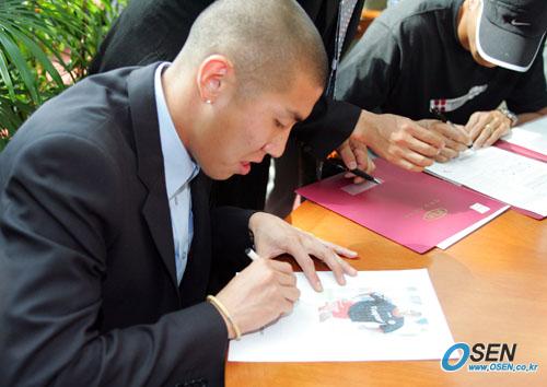설기현은 계약서에 서명하고, 차두리는 기념 사인하고