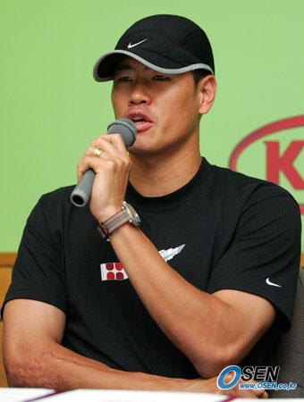 기아자동차가 유럽 무대에서 활약하는 국가대표 스타 이영표 설기현 박지성 차두리를 위촉, 23일 오전 서울 양재동의 본사에서 자동차 증정식을 가졌다. 본인들의 희망에 따라 박지성은 쏘렌토, 나머지 3명은 오피러스를 받았다. 설기현이 마이크를 잡고 간단히 인사말을 하고 있다./주지영 기자 jj0jj0@osen.co.kr [Copyright ⓒ OSEN(www.osen.co.kr) 무단전재 및 재배포 금지]