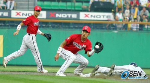 23일 LG 트윈스와 기아 타이거즈의 잠실경기 LG의 4회말 2사 1루 안재만 타석 때 1루 주자 박용택이 헤드퍼스트 슬라이딩으로 2루 도루에 성공하고 있다. 기아 2루수는 김민철./잠실=주지영 기자 jj0jj0@osen.co.kr [Copyright ⓒ OSEN(www.osen.co.kr) 무단전재 및 재배포 금지]