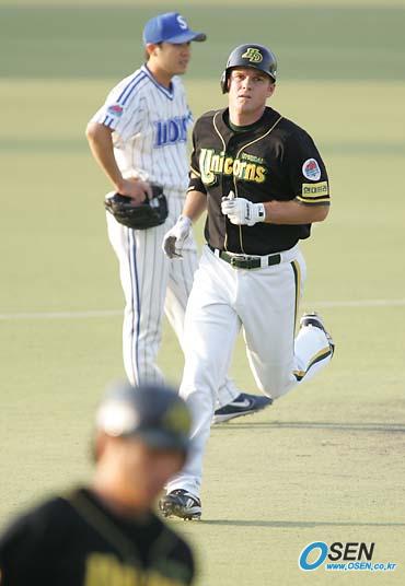 23일 대구에서 벌어진 삼성 라이온즈와 현대 유니콘스의 경기 현대의 1회초 1사 1,2루서 서튼이 선제 3점 홈런을 치고 삼성 유격수 박진만 앞을 돌아 홈으로 향하고 있다. 홈런 선두 서튼은 시즌 19호로 독주 체제에 돌입했다./대구=손용호기자spjj@osen.co.kr [Copyright ⓒ OSEN(www.osen.co.kr) 무단전재 및 재배포 금지]