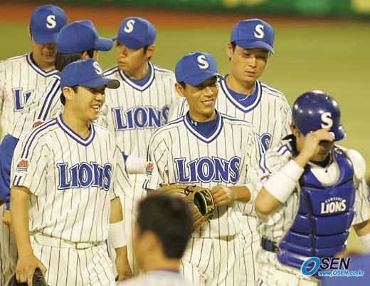 23일 대구에서 벌어진 삼성 라이온즈와 현대 유니콘스의 경기서 삼성이 현대에 1점차로 짜릿한 역전승을 거두고 이날 SK에 패한 2위 두산과의 승차를 2게임으로 벌렸다. 삼성 선수들이 경기를 끝낸 뒤 환한 표정으로 그라운드를 나서고 있다./대구=손용호 기자 spjj@osen.co.kr [Copyright ⓒ OSEN(www.osen.co.kr) 무단전재 및 재배포 금지]