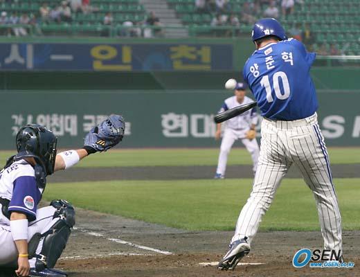 25일 인천 문학 구장에서 벌어진 SK 와이번스와 삼성 라이온즈의 경기 5회초 삼성의 양준혁이 SK 선발 투수 윤길현으로부터 좌익수 앞에 떨어지는 안타를 빼앗아 개인 통산 1772안타로 이 부문 최다 기록 보유자가 됐다. 양준혁이 윤길현의 공을 밀어쳐 신기록을 수립하고 있다./인천=손용호 기자 spjj@osen.co.kr [Copyright ⓒ OSEN(www.osen.co.kr) 무단전재 및 재배포 금지]