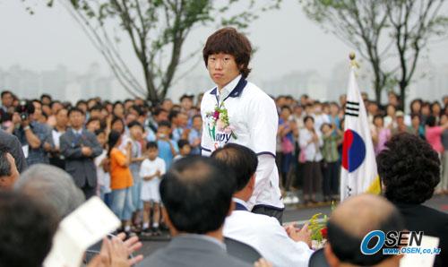 27일 오후 수원시 영통구 망포동 벽산e빌리지아파트 앞에서 열린 박지성로 개통식에서 박지성이 자리에서 일어나 참석자들에게 인사하고 있다./수원=주지영 기자 jj0jj0@osen.co.kr [Copyright ⓒ OSEN(www.osen.co.kr) 무단전재 및 재배포 금지]