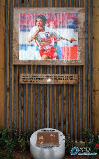 지난 27일 오후 개통된 수원시 영통구 망포동의 벽산e빌리지아파트 앞 박지성로를 가는 길목에는 박지성의 사진들과 풋 프린트가 전시돼 있다./수원=주지영 기자 jj0jj0@osen.co.kr [Copyright ⓒ OSEN(www.osen.co.kr) 무단전재 및 재배포 금지]