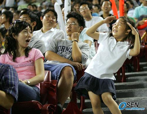 28일 잠실 구장에서 벌어진 두산 베어스와 롯데 자이언츠의 경기 중 롯데 팬인 꼬마 소녀가 음악에 맞춰 엄마 옆에서 춤을 추고 있다./잠실=주지영 기자 jj0jj0@osen.co.kr [Copyright ⓒ OSEN(www.osen.co.kr) 무단전재 및 재배포 금지]