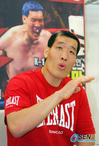 이종격투기 K-1 스타 최홍만과 여자 프로복싱 세계챔피언 김주희가 29일 서울 숙대입구 앞 스프리스 매장 확장 오픈 기념 사인회를 열었다. 최홍만이 사인회에 앞서 가진 인터뷰에서 기자들의 질문에 답변하고 있다./주지영 기자 jj0jj0@osen.co.kr [Copyright ⓒ OSEN(www.osen.co.kr) 무단전재 및 재배포 금지]