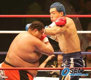 "먹느냐 먹히느냐다. 이번엔 반드시 최홍만을 쓰러뜨린다". 오는 30일(이하 한국시간) K-1 월드그랑프리 하와이대회에서 최홍만(25)과 4개월만에 리턴매치를 벌이는 일본 스모 요코즈나 출신 아케보노(36)가 설욕의 의지를 나타냈다. 지난 3월19일 K-1 월드그랑프리 서울대회 준결승에서 최홍만에게 맥없이 TKO(기권패)했던 아케보노는 지난달 30일 하와이대회 대전 발표 기자회견에서 "스모 선수 시절을 포함,고향인 하와이에선 한번도 경기를 한 적이 없다. 하와이에서 이번 대회가 열려 굉장히 기쁘다"며 "하와이에서 태어났기 때문에 절대 질 수 없다"고 결연하게 밝혔다. 3월 서울대회 준결승에서 최홍만에게 1라운드 41초만에 타월을 던졌던 아케보노는 이날 회견에서 "링에 올라서면 과거의 훈장(스모 요코즈나 타이틀)은 필요없다. 감상적인 생각을 버리고 비정하게 하겠다"며 "(최홍만과 대결은) 오로지 먹느냐 먹히느냐일 뿐이다. 지난번 대결은 토너먼트여서 최홍만과 정상 컨디션으로 싸우지 못했지만 이번엔 원매치이기 때문에 최홍만을 거꾸러뜨리겠다"고 기염을 토했다. 아케보노는 3월대회 1회전에서 가쿠다 노부아키를 꺾고 K-1 6패 끝에 첫 승을 따냈지만 노부아키와 경기 도중 발목을 다쳐 최홍만과 준결승에선 1라운드 채 1분도 버티지 못하고 경기를 포기했다. 최홍만은 서울대회 우승에 이어 6월14일 히로시마 대회 슈퍼파이트에서도 프로레슬러 출신 톰 하워드를 KO로 꺾고 현재 4연승을 기록중이다. 반면 아케보노는 최홍만에게 3월 대회에서 패한 이후 격투기 무대 복귀전이다. 지난 5월 일찌감치 하와이로 와 전 무에타이 챔피언 릭 리건에게 맹훈련을 받아온 아케보노는 "특별한 건 없었지만 발놀림과 주먹을 뻗는 방향 등 기본적인 테크닉을 익히는데 중점을 뒀다"고 밝혔다. 최홍만-아케보노 대결 등 슈퍼파이트 3게임과 8강 토너먼트가 벌어질 K-1 월드그랑프리 하와이대회는 오는 30일 새벽 3시부터 하와이 알로하 스타디움에서 펼쳐진다. 이종민 기자 mini@osen.co.kr [Copyright ⓒ OSEN(www.osen.co.kr) 무단전재 및 재배포 금지]