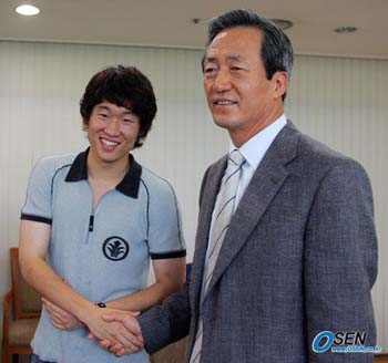 잉글랜드 프리미어리그 맨체스터 유나이티드에 합류하는 '달리는 산소통' 박지성(24)이 출국 전 정몽준 대한축구협회 회장을 만났다. 박지성은 4일 오전 10시 서울 신문로 축구회관에서 정 회장과 만나 10분간 이야기를 나누고 프리미어리그에서도 열심히 뛰겠다고 밝혔다. 박지성 측의 요청으로 만난 이번 자리에서 정 회장도 "프리미어리그에서도 열심히 뛰어 후배들을 이끌어달라"고 당부한 뒤 "오는 9월 직접 영국으로 날아가 경기를 지켜보겠다"고 약속했다. 한편 박지성은 "아직 취업비자가 나오지 않은 상태이나 비자가 나오는 즉시 영국으로 날아갈 것"이라며 "팀 적응을 위해 빨리 합류해야한다고 조바심 갖지는 않는다. 가서 잘해야겠다는 생각 뿐"이라고 밝혔다. 또 박지성은 "영어를 잘하는 편은 아니지만 네덜란드에서 좀 배웠기 때문에 어느 정도 의사 소통은 가능하다"며 "통역없이 직접 동료들과 부딪치는 것이 적응에 도움이 될 것"이라고 말해 영어 사용에 대한 주변의 걱정을 일축했다. 오는 8일께 비자가 나오는 즉시 영국으로 날아가 맨체스터 유나이티드와 입단식을 맺을 예정인 박지성은 이번달 말 중국, 일본 등지에서 진행되는 구단 아시아 투어를 통해 신고식을 치르게 된다. 박상현 기자 tankpark@osen.co.kr [Copyright ⓒ OSEN(www.osen.co.kr) 무단전재 및 재배포 금지]