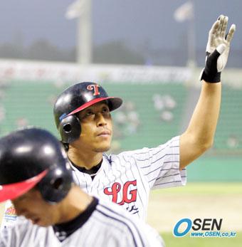 5일 LG 트윈스와 두산 베어스의 잠실 경기 LG의 5회말 1사 1루서 이병규가 우중월 2점 홈런을 날리고 들어온 뒤 팬들을 향해 손을 들며 인사하고 있다./잠실= 주지영 기자 jj0jj0@osen.co.kr [Copyright ⓒ OSEN(www.osen.co.kr) 무단전재 및 재배포 금지]
