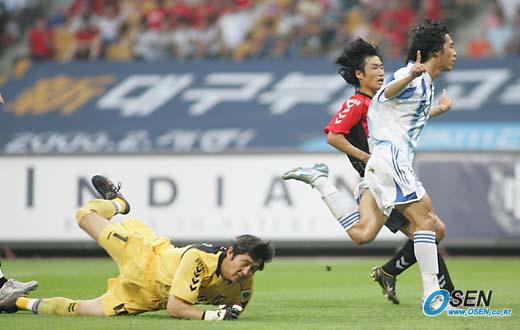 6일 부산 아시아드 주경기장에서 벌어진 부산 아이파크와 FC 서울의 경기 전반 서울의 박주영(가운데)이 히칼도의 어시스트를 받아 한 박자 빠른 헤딩슛으로 달려 나오던 부산 골키퍼 김용대의 키를 넘어가는 골을 성공시킨 뒤 양 손 엄지와 검지를 세우며 기뻐하고 있다./부산=손용호 기자 spjj@osen.co.kr [Copyright ⓒ OSEN(www.osen.co.kr) 무단전재 및 재배포 금지]
