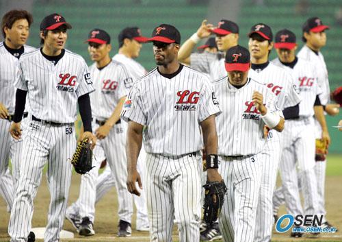 6일 잠실경기에서 두산 베어스를 6연패의 늪으로 빠트리고 5연승을 구가한 LG 트윈스 선수들이 승리 직후 의기양양하게 그라운드를 물러나고 있다. /잠실=주지영 기자 jj0jj0@osem.co.kr [Copyright ⓒ OSEN(www.osen.co.kr) 무단전재 및 재배포 금지]