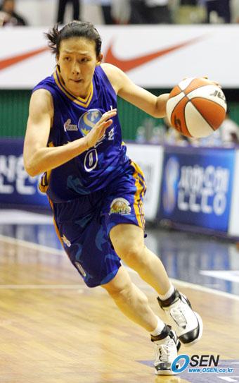 신한은행배 2005 여자프로농구(WKBL) 여름리그가 7일 서울 장충체육관에서 개막돼 78일간의 열전에 돌입했다. 개막전서 신한은행의 전주원이 특유의 날렵한 드리블로 골밑을 향해 돌진하고 있다./장충체=주지영 기자 jj0jj0@osen.co.kr [Copyright ⓒ OSEN(www.osen.co.kr) 무단전재 및 재배포 금지]