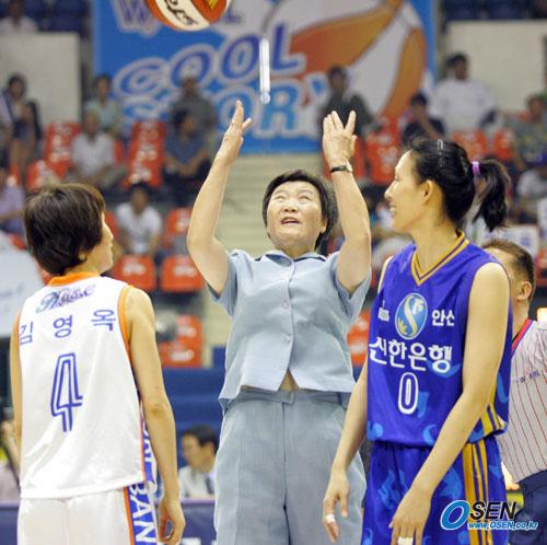신한은행배 2005 여자프로농구(WKBL) 여름리그가 7일 서울 장충체육관에서 개막돼 78일간의 열전에 돌입했다. 윤순녀 한국정신대문제대책협의회장이 안산 신한은행과 춘천 우리은행의 개막전 시구를 맡았다./장충체=주지영 기자 jj0jj0@osen.co.kr [Copyright ⓒ OSEN(www.osen.co.kr) 무단전재 및 재배포 금지]
