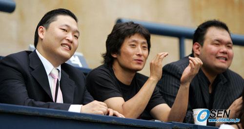 10일 두산 베어스와 삼성 라이온즈의 잠실경기서 시구를 맡은 인기 가수 싸이(왼쪽)가 본부석에서 관전하면서 아쉬운 듯한 표정을 짓고 있다./잠실=주지영 기자 jj0jj0@osen.co.kr [Copyright ⓒ OSEN(www.osen.co.kr) 무단전재 및 재배포 금지]