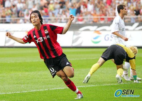 선제골을 터뜨리고 환호하는 박주영