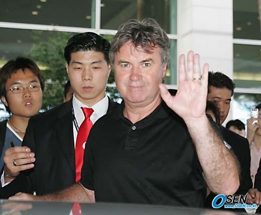 오는 15일 개막되는 피스컵 2005 코리아 대회에 참가하는 네덜란드 PSV 아인트호벤의 히딩크 감독과 선수들이 12일 오후 인천공항을 통해 입국했다. 히딩크 감독이 승용차를 타기 전 취재진에게 손을 흔들고 있다. 아인트호벤은 13일 오후 6시 20분 인천 문학구장에서 고려대 OB와 친선경기를 갖는다./인천공항=손용호 기자 spjj@osen.co.kr [Copyright ⓒ OSEN(www.osen.co.kr) 무단전재 및 재배포 금지]
