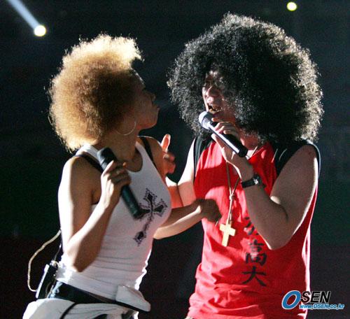 13일 인천 문학 월드컵경기장에서 벌어진 PSV 아인트호벤과 고려대 OB 프로 올스타의 경기가 끝난 뒤 인기 가수 인순이의 축하 공연이 이어졌다. 한 남성 관중이 그라운드로 뛰어 내려와 인순이와 함께 노래부르며 즐거워하고 있다./인천=손용호 기자 spjj@osen.co.kr [Copyright ⓒ OSEN(www.osen.co.kr) 무단전재 및 재배포 금지]