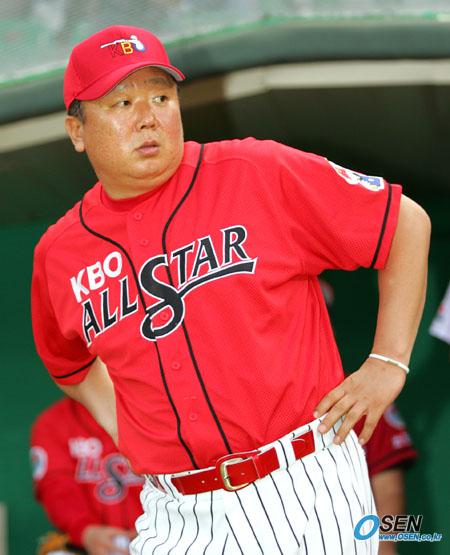 2005 삼성 PAVV 올스타 전야제가 15일 인천 문학구장에서 열렸다. 전야제의 하이라이트인 올드스타전을 앞두고 프로 지도자들로 구성된 KBO(한국야구위원회) 올스타의 선동렬 삼성 감독이 허리를 돌리며 몸을 풀고 있다./인천=주지영 기자 jj0jj0@osen.co.kr [Copyright ⓒ OSEN(www.osen.co.kr) 무단전재 및 재배포 금지]